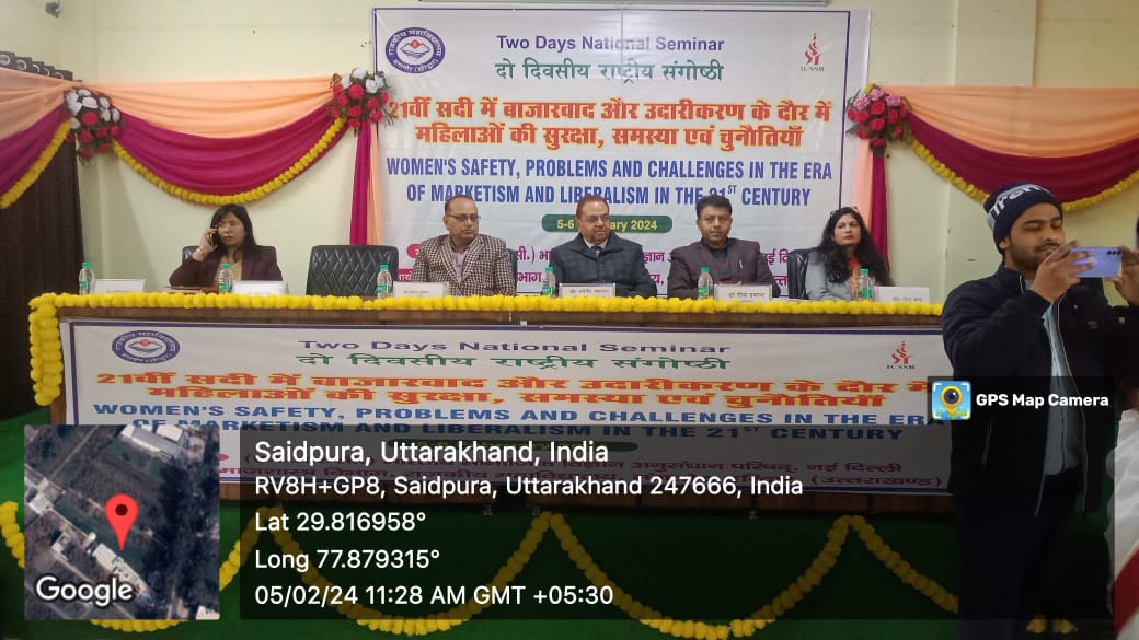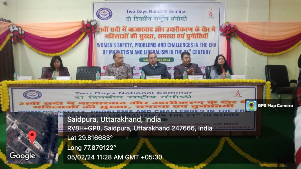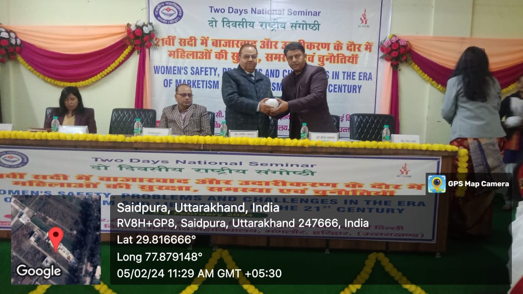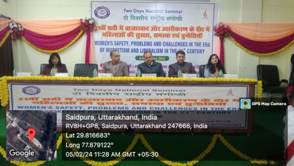 मंगलौर/रूडकी : राजकीय महाविद्यालय मंगलौर हरिद्वार ने उच्च शिक्षा में नये आदर्शों को प्राप्त करते हुए समाजशास्त्र विभाग द्वारा “21 वीं सदी में बाजारवाद और उदारीकरण के दौर में महिलाओं की सुरक्षा, समस्या एवं चुनौतियों” विषय पर दो दिवसीय राष्ट्रीय संगोष्ठी का आयोजन किया। इस संगोष्ठी के मुख्य अतिथि प्रो. धर्मवीर महाजन, प्रति कुलपति एवं सीनेट सदस्य, अन्तराष्ट्रीय रिसर्च फाउन्डेशन, नई दिल्ली विशिष्ट अतिथि डॉ. अनिता मोराल एसो. प्रो. मनोविज्ञान विभाग, मेरठ महाविद्यालय मेरठ, डॉ. प्रशान्त कुमार समाजशास्त्र विभाग, श्री देव सुमन विश्वविद्यालय, ऋषिकेश परिषर एवं डॉ. राकेश राणा, एसो. प्रो. समाजशास्त्र विभाग एमएमएच महाविद्यालय गाजियाबाद, ने दीप प्रज्जवलित कर सरस्वती वंदना करी। इस के उपरान्त संगोष्ठी का संचालन कर रहे डॉ. प्रवेश त्रिपाठी ने आंमत्रित अतिथियों का स्वागत करने के लिए भारती, असमा, अमीशा, इत्यादि छात्राओं को निमंत्रित किया। अनन्तर, महाविद्यालय के प्राचार्य डॉ. तीर्थ प्रकाश ने सभी अतिथियों का स्वागत करते हुए राष्ट्रीय संगोष्ठी को सफल होने के लिए शुभकामनायें दी।
