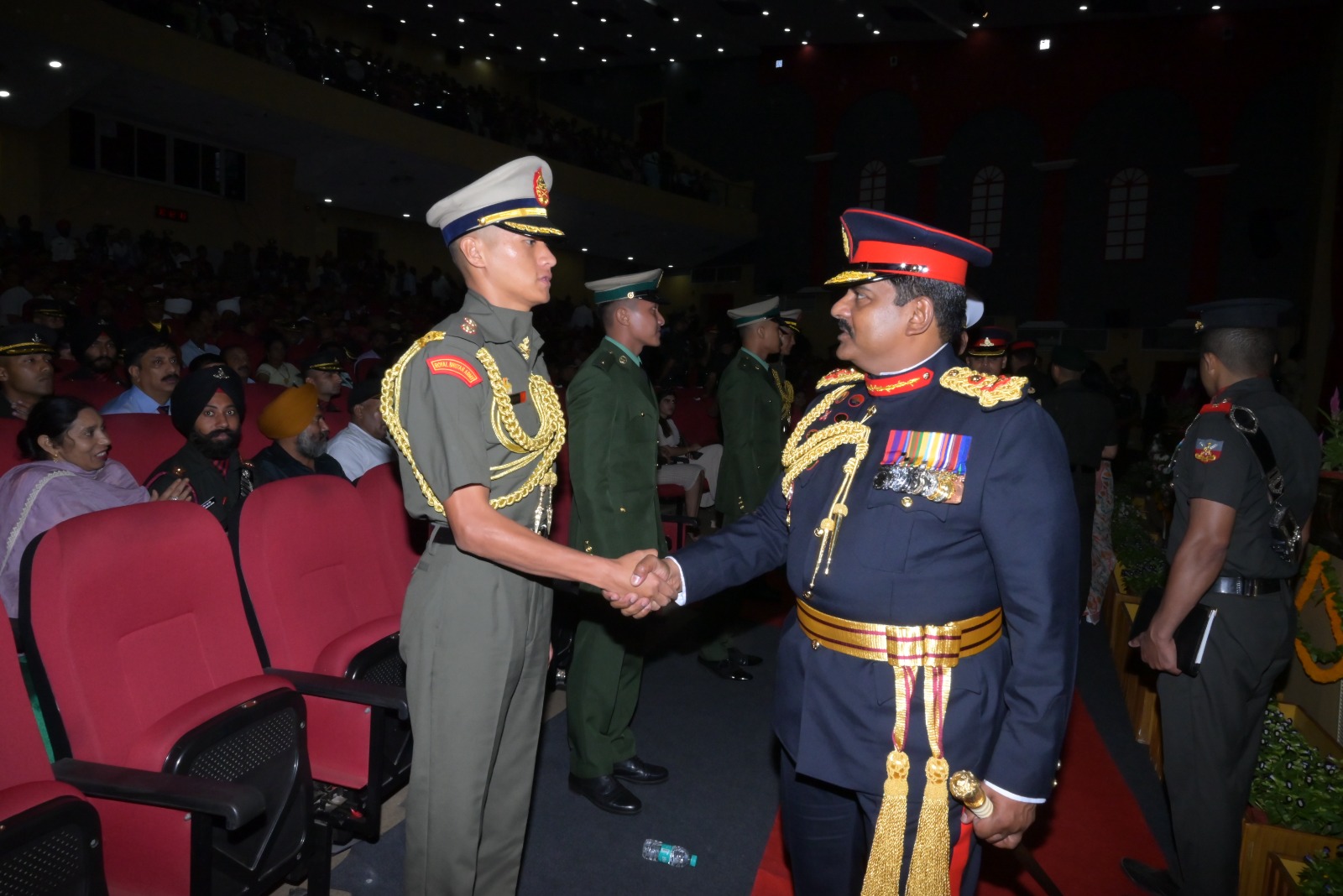 इस अवसर पर 156वें नियमित पाठ्यक्रम, 45वें तकनीकी प्रवेश योजना (TES) और 139वें तकनीकी स्नातक पाठ्यक्रम के कुल 451 ऑफिसर कैडेट्स, विशेष कमीशन अधिकारियों (SCO-54) सहित नौ मित्र राष्ट्रों के 32 विदेशी कैडेट्स ने प्रशिक्षण पूर्ण कर अकादमी से गौरवपूर्वक विदाई ली। यह दिन IMA के इतिहास में एक और स्वर्णिम अध्याय के रूप में दर्ज हुआ। परेड के दौरान ऑफिसर कैडेट्स ने ‘सारे जहाँ से अच्छा’ और ‘कदम-कदम बढ़ाए जा’ जैसे प्रेरक सैन्य धुनों पर अनुशासित और जोशीले कदमों से मार्च करते हुए अपनी प्रतिबद्धता, गर्व और आत्मविश्वास का परिचय दिया। इस ऐतिहासिक क्षण को उनके परिजन, गणमान्य अतिथि और देश-विदेश के दर्शक मीडिया के माध्यम से साक्षी बने।