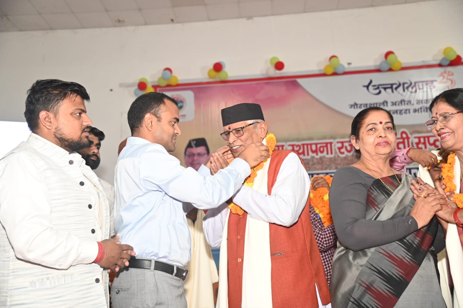 हरिद्वार : उत्तराखंड राज्य के स्थापना रजत जयंती सप्ताह के अंतर्गत आयोजित कार्यक्रमों में आज ऋषिकुल आयुर्वेदिक महाविधालय ऑडोटोरियम में जिला प्रशासन की ओर से जनपद के राज्य आंदोलनकारियों के लिए सम्मान समारोह आयोजित किया गया, जिसमें मुख्य अतिथि राज्य सभा सासंद कल्पना सैनी एवं अन्य जनप्रतिनिधियों द्वारा दीप प्रज्वलित कर कार्यक्रम का शुभारंभ किया।इस अवसर पर राज्य आंदोलनकारियों को पुष्प माला एवं शॉल भेंटकर सम्मानित किया।