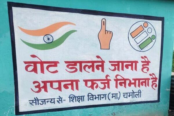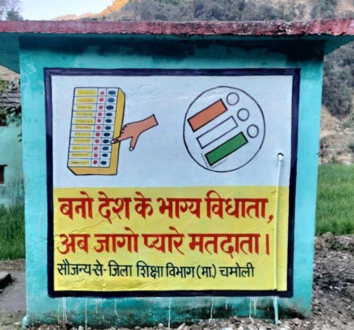 चमोली : चित्रकला के शिक्षक व छात्र वाल पेंटिंग कर दे रहे मतदाता जागरूकता का संदेश