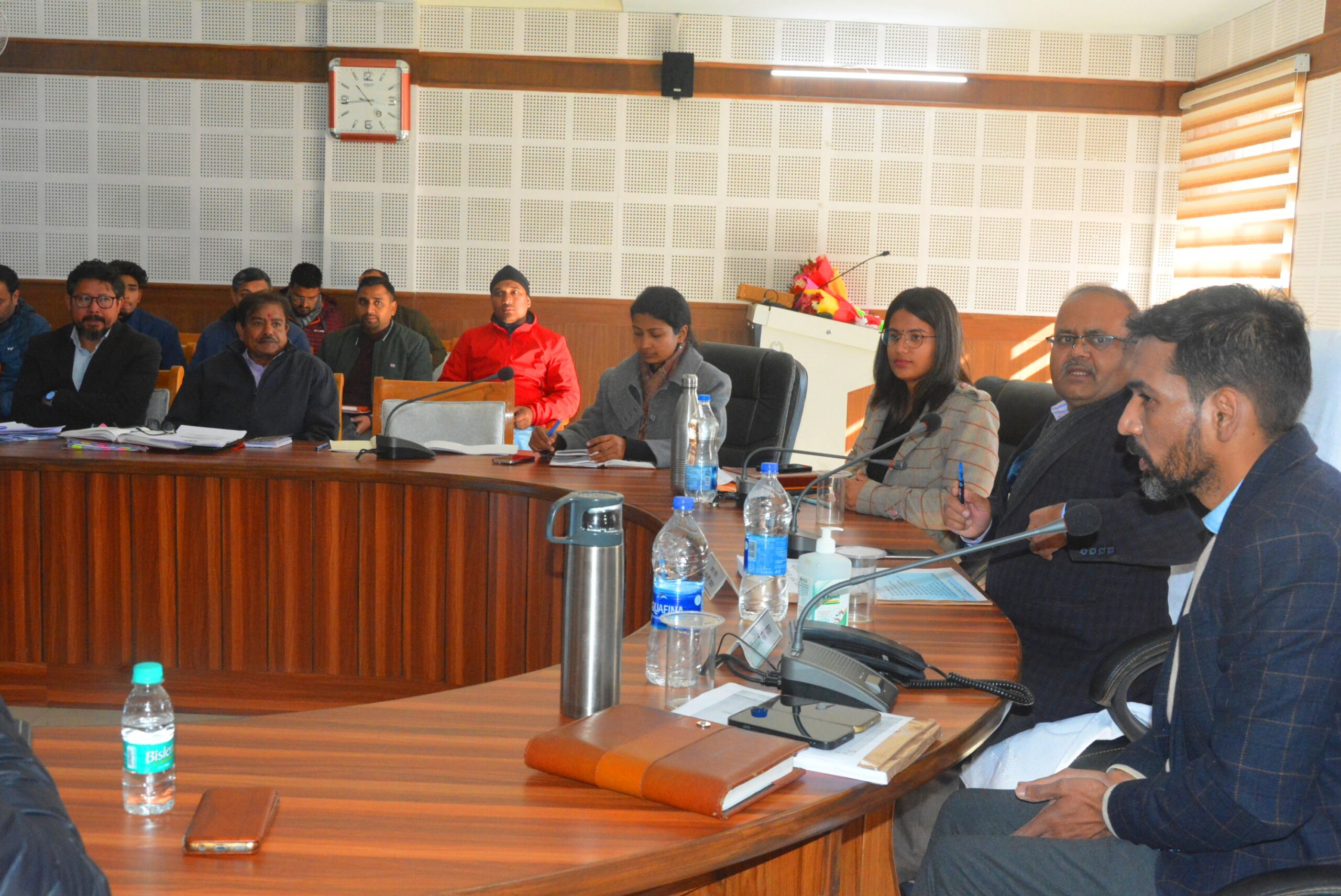 बैठक में जिलाधिकारी डॉ आशीष चौहान ने सभी विभागीय अधिकारियों को सचिव उत्तराखण्ड शासन विनोद कुमार सुमन के निर्देशों के क्रम में विकास कार्यों को तेजी से क्रियान्वित करने तथा सरकार के मुख्य फोकस वाले सैक्टर्स को प्राथमिकता के आधार पर लेते हुए कार्यवाही करने के निर्देश दिये। इसके पश्चात सचिव ने रांसी स्टेडियम व पर्यटन आवास गृह का निरीक्षण किया। इस दौरान बैठक में मुख्य विकास अधिकारी अपूर्वा पाण्डे, जिला विकास अधिकारी मानवेन्द्र कौर, सीएमओ डॉ. प्रवीण कुमार, अधीक्षण अभियंता लोनिवि पीएस बृजवाल, अधीक्षण अभियंता मो. मिसम, महा प्रबंधक उद्योग शैलेन्द्र डिमरी, सीटीओ गिरीश चन्द्र, डीएसओ के.एस. कोहली, ज्वांइट मजिस्ट्रेट अनामिका, अर्थ एवं संख्याधिकारी राम सलोने सहित संबंधित अधिकारी व कर्मचारी उपस्थित थे।