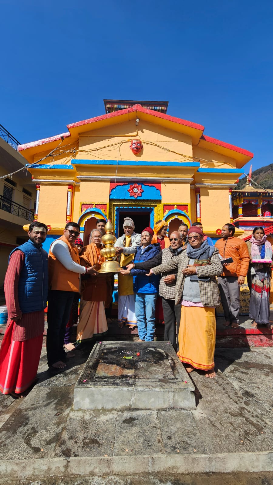 श्री विश्वनाथ मंदिर की नवनिर्मित छतरी तथा शीर्ष कलश को किया गया विधिवत स्थापित
