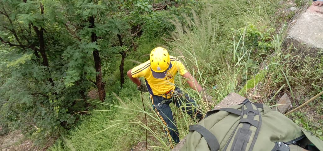 टिहरी : तोताघाटी के पास गहरी खाई में ट्रक हुआ दुर्घटनाग्रस्त, SDRF ने बरामद किया चालक का शव। आज 15 सितंबर 2023 को पुलिस चौकी बचेली खाल द्वारा SDRF को सूचना दी गयी कि तोताघाटी के पास एक ट्रक अनियंत्रित होने से लगभग 150 मीटर गहरी खाई में दुर्घटनाग्रस्त हो गया है। उक्त सूचना पर पोस्ट ब्यासी से HC महावीर रावत के हमराह SDRF रेस्क्यू टीम मय आवश्यक उपकरणों के घटनास्थल के लिए रवाना हुई। SDRF टीम द्वारा घटनास्थल पर पहुँचकर रोप की सहायता से खाई में उतरकर सर्च अभियान चलाया गया, सर्चिंग के दौरान रेस्क्यू टीम द्वारा उक्त वाहन चालक का शव बरामद कर लिया गया जिसे रोप व स्ट्रैचर की सहायता से मुख्य मार्ग तक पहुँचाकर जिला पुलिस के सुपर्द किया गया।