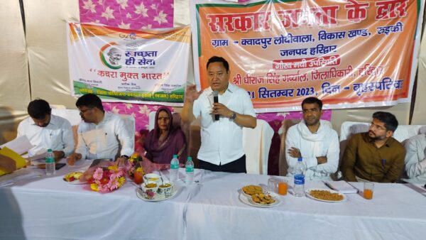 डीएम धीराज सिंह गर्ब्याल ने स्वच्छता ही सेवा पखवाड़े का जिक्र करते हुये कहा कि स्वच्छता ही सेवा पखवाड़ा विगत 15 सितम्बर से प्रारम्भ हो चुका है, जो 02 अक्टूबर तक चलेगा। उन्होंने बताया कि स्वच्छ भारत मिशन (ग्रामीण) के अन्तर्गत जनपद हरिद्वार की कुल 482 ग्रांम पंचायतों में स्वच्छ सर्वेक्षण 2023 के आधार पर जनपद हरिद्वार को राज्य में प्रथम एवं राष्ट्रीय स्तर पर छठा स्थान प्राप्त हुआ है, जिसके अन्तर्गत जनपद के 13 गांवों को स्वच्छता पुरस्कार प्राप्त हुआ है तथा हम आशा करते हैं कि आने वाले समय में ग्राम कवादपुर लोदीवाला भी पुरस्कार प्राप्त करने की श्रेणी में होगा, जिसके लिये उन्हें अभी से मेहनत करनी होगी। उन्होंने इस मौके पर सभी को स्वच्छता की शपथ भी दिलाई।