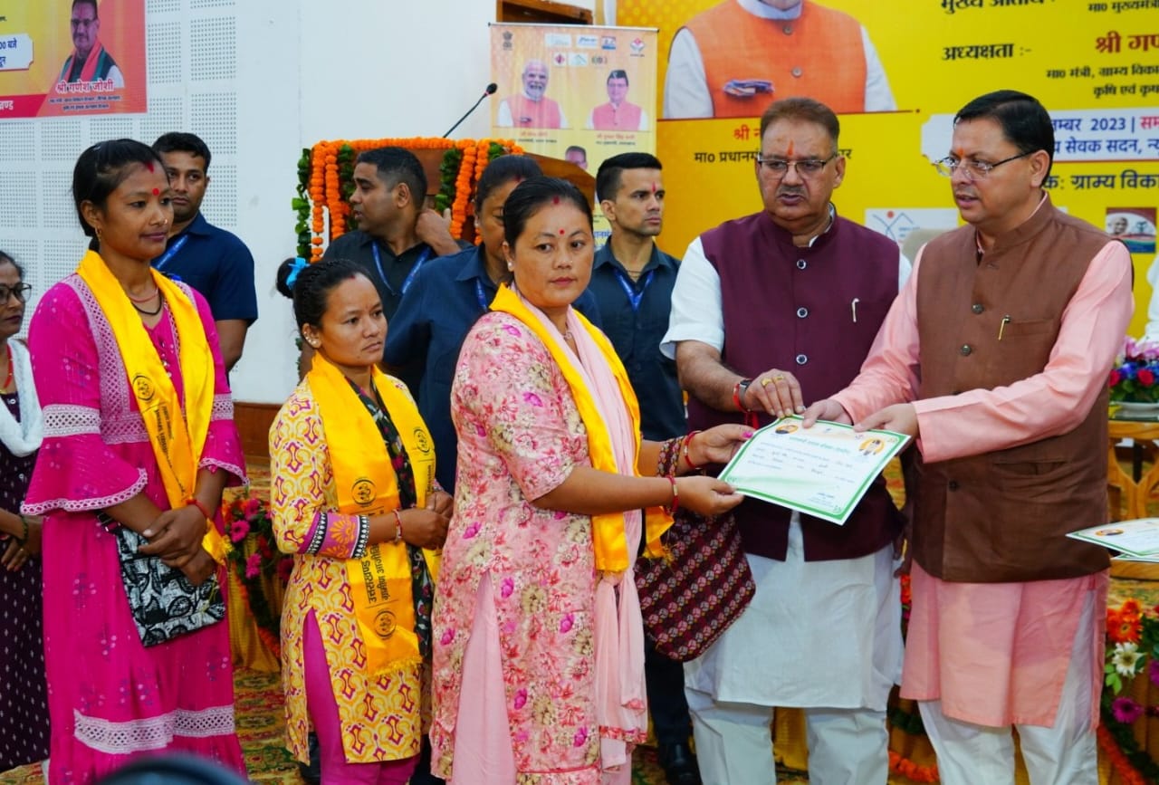 ग्राम्य विकास मंत्री गणेश जोशी ने कहा कि प्रधानमंत्री नरेंद्र मोदी के नेतृत्व में सभी योजनायें गरीबों, वंचितों एवं मातृ शक्ति को ध्यान में रखते हुए चलाई जा रही हैं। प्रधानमंत्री आवास योजना-ग्रामीण के अन्तर्गत राज्य में अभी तक 62 हजार 932 लाभार्थियों को आवास स्वीकृत किये जा चुके हैं तथा 609 करोड़ की धनराशि लाभार्थियों के बैंक खाते में भेजी जा चुकी है। अब तक 36229 आवास पूर्ण किए जा चुके हैं। अवशेष 12079 लाभार्थियों की आवास स्वीकृति की प्रक्रिया गतिमान है। समूहों को सशक्त बनाने हेतु वित्तीय समावेशन कर 44255 समूहों को रिवाल्विंग फण्ड के रूप में 53.67 करोड़ रुपये, 27079 समूहों को 174.27 करोड़ रू0 का सामुदायिक निवेश निधि एवं 55257 समूहों हेतु 443.27 करोड़ बैंक लिंकेज कर विभिन्न आजीविका संवर्धन गतिविधियों का संचालन किया जा रहा है। 2025 तक राज्य में 1.25 लाख महिलाओं को लखपति दीदी के रूप में तैयार किये जाने का लक्ष्य रखा गया है। वर्तमान समय तक 40272 महिलाओं को लखपति दीदी के रूप में तैयार किया गया है। इस अवसर पर सचिव ग्राम्य विकास राधिका झा, आयुक्त ग्राम्य विकास आनन्द स्वरूप, जिलाधिकारी देहरादून सोनिका, अपर सचिव ग्राम्य विकास नितिका खण्डेलवाल, सीडीओ देहरादून झरना कमठान सहित अन्य उपस्थित थे।