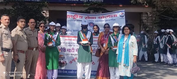 कोटद्वार। मेरी माटी मेरा देश अभियान के तहत राष्ट्रीय सेवा योजना की शाखा राजकीय बालिका इंटर कॉलेज के स्वयंसेवकों ने अमृत कलश यात्रा निकाली गई । जिसका शुभारंभ विद्यालय की प्रधानाचार्य सुनीता मधवाल, राष्ट्रीय सेवा योजना प्रभारी विमला तड़ियाल, विद्यालय की समस्त शिक्षिकाओं एवं स्वयंसेवकों ने क्रमशः मिट्टी अर्पित कर किया तदुपरांत कलश यात्रा विद्यालय से बाहर तहसील परिसर होते हुए थाना कार्यालय कोटद्वार पहुंची जहां पर पुलिस कर्मचारियों ने भी कलश में मिट्टी अर्पित की उसके पश्चात अमृत कलश यात्रा नगर निगम कार्यालय होते हुए आगे पहुंची आगे इंडियन गैस एजेंसी के मैनेजर व कर्मचारियों ने भी मिट्टी अर्पित की । अमृत कलश यात्रा में नैनीताल बैंक के मैनेजर एवं कार्यालय स्टाफ ने भी मिट्टी अर्पित की । इसी क्रम में कलश यात्रा मालवीय उद्यान से होते हुए वापस अपने विद्यालय पहुंचे । यह अमृत कलश यात्रा आजादी के अमृत महोत्सव के अंतर्गत देश की आजादी के लिए अपना बलिदान करने वाले ज्ञात व अज्ञात वीरों शहीदों और स्वतंत्रता सेनानियों के सम्मान में निकल गई है । मेरी माटी मेरा देश अभियान 1 अक्टूबर से 13 अक्टूबर तक चलाया गया ।
