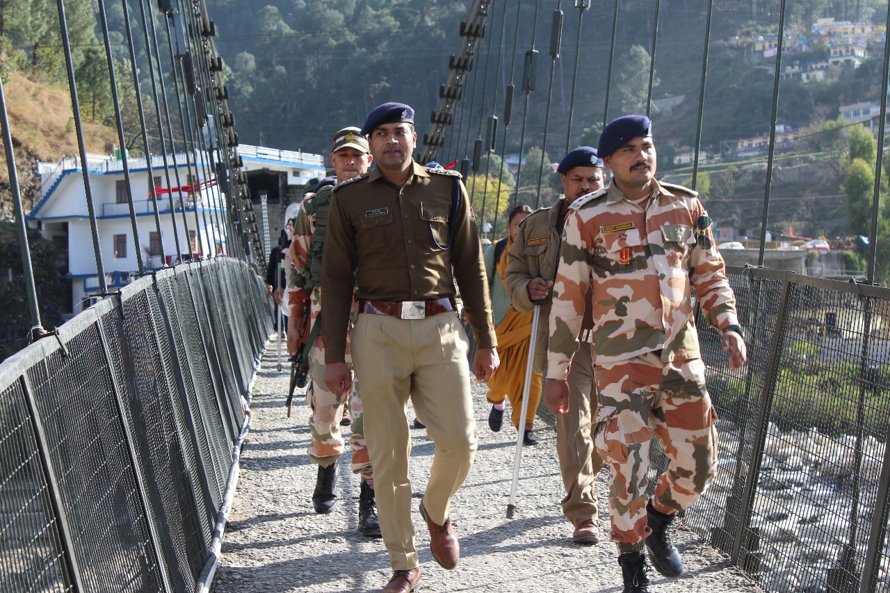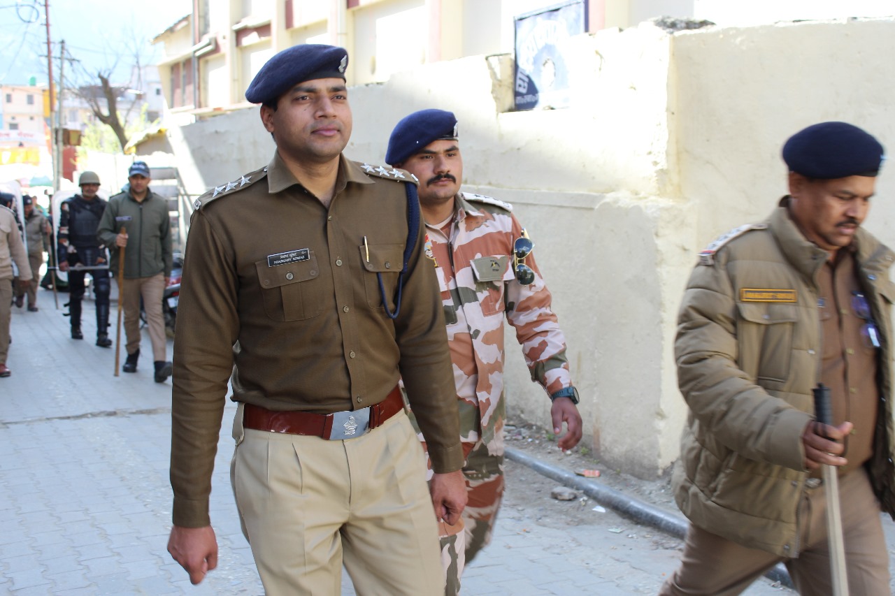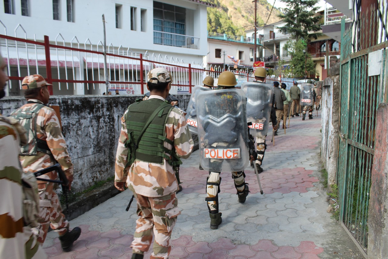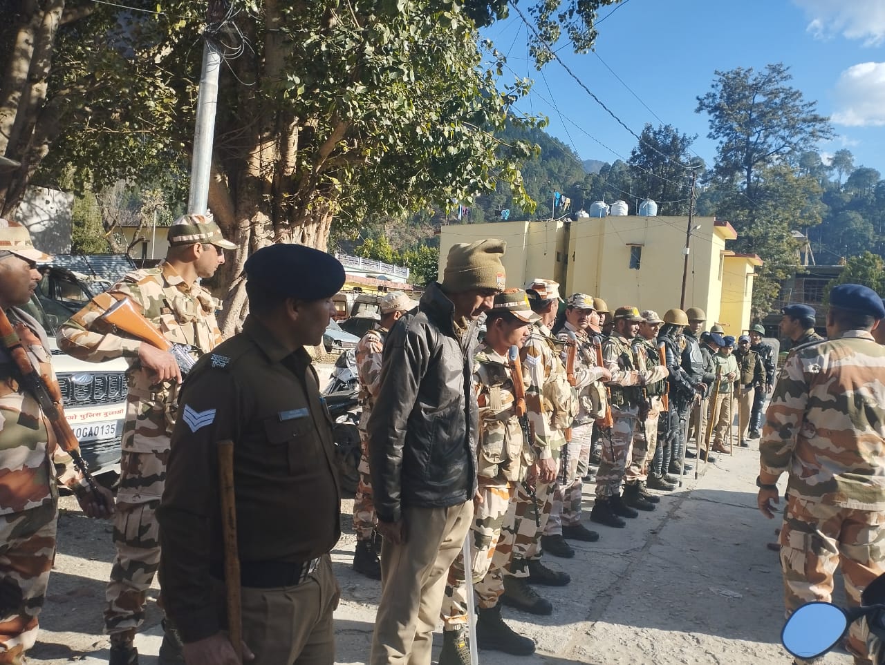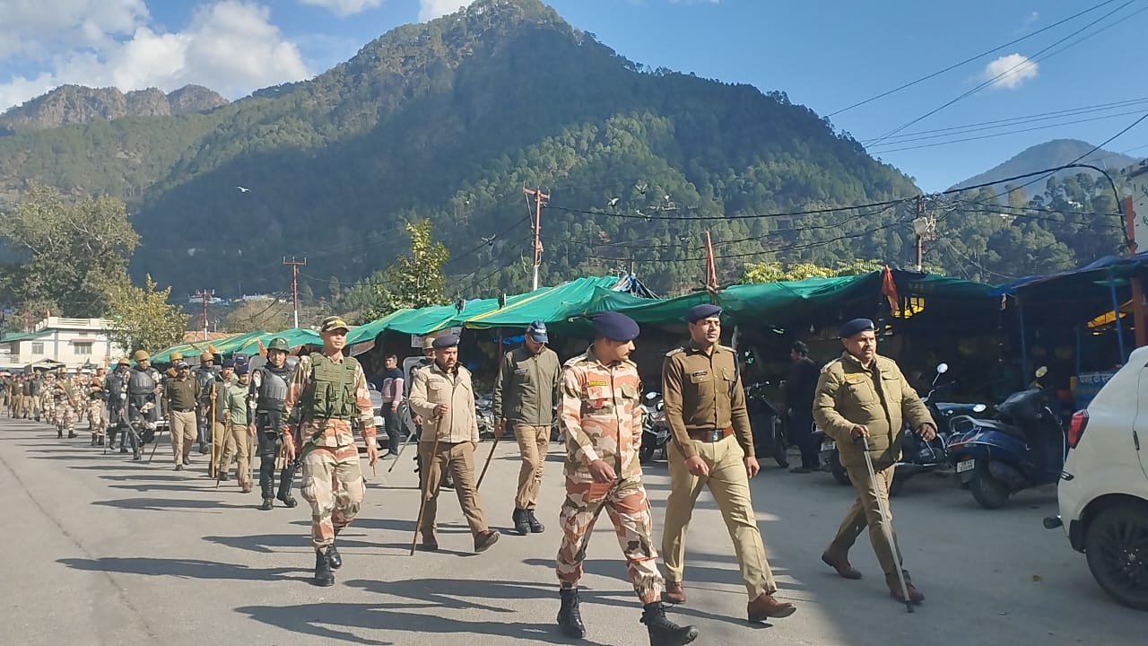 उत्तरकाशी पुलिस व पैरामिलिट्री फोर्स ने किया फ्लैग मार्च