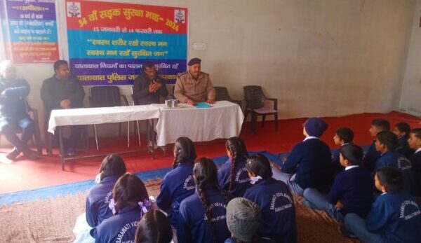 उत्तरकाशी (कीर्ति निधि सजवाण): सड़क सुरक्षा एवं यातायात नियमों के प्रति आमजन को जागरुक करने के उद्देश्य से प्रदेशभर में चलाए जा रहे 34वें सड़क सुरक्षा माह के दूसरे दिन अर्पण यदुवंशी, पुलिस अधीक्षक उत्तरकाशी के दिशा–निर्देशन में निरीक्षक यातायात राजेन्द्र नाथ के नेतृत्व में यातायात पुलिस टीम द्वारा सरस्वती विद्या मन्दिर इण्टर कॉलेज डुण्डा में सड़क सुरक्षा जनजागरुकता शिविर आयोजित किया गया। इस दौरान यातायात पुलिस द्वारा छात्र/छात्राओं को यातायात नियमों की विस्तृत जानकारी प्रदान कर जागरुक किया गया। उनके द्वारा सभी से यातायात नियमों का पालन करने, बिना हेलमेट के दोपहिया वाहन न चलाने, ओवर स्पीड मे न चलने, नशे की हालत में वाहन न चलाने, वाहन चलाते समय मोबाइल फोन का प्रयोग न करने तथा 18 वर्ष से कम उम्र के बच्चों से वाहन न चलाने की अपील की गयी। इसके अतिरिक्त यातायात पुलिस टीम द्वारा उत्तरकाशी मेन बाजार में सब्जी मण्डी के पास स्टाल लगाकर आमजन/वाहन चालकों को ट्रैफिक नियमों की जानकारी देते हुये ट्रैफिक सिग्नलों के बारे मे जागरुक किया गया।