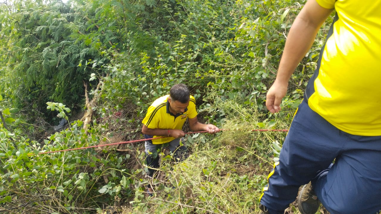 टिहरी : जनपद टिहर के कोटि कॉलोनी क्षेत्र खाण्डखाल के पास वाहन हुआ दुर्घटनाग्रस्त, SDRF ने चलाया राहत एवं बचाव अभियान। आज 23 सितंबर 2023 को कोटि कॉलोनी के स्थानीय लोगो द्वारा SDRF को सूचित किया गया कि खाण्डखाल के पास एक वाहन अनियंत्रित होने से लगभग 30 मीटर खाई में गिर गया है। उक्त सूचना पर SDRF टीम मुख्य आरक्षी राकेश सिंह के हमराह मय आवश्यक रेस्क्यू उपकरणों के तत्काल घटनास्थल के लिए रवाना हुई। SDRF टीम द्वारा घटनास्थल पर पहुँचकर त्वरित कार्यवाही करते हुऐ खाई में गिरे वाहन तक पहुँच बनायी व कार सवार सभी 05 लोगो को खाई से बाहर निकाला। सौभाग्य से सभी लोग मामूली रूप से घायल थे जिन्हें टीम द्वारा रोप की सहायता से वैकल्पिक मार्ग से होते हुए मुख्य मार्ग तक लाया गया।