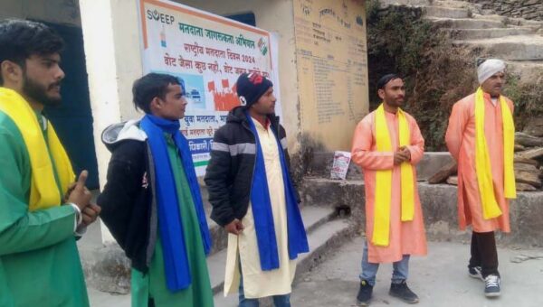 चमोली : जिला निर्वाचन विभाग की ओर से चमोली में मतदाता जागरुकता अभियान महोत्सव के तहत एक ओर जहां राजकीय नर्सिंग कॉलेज गोपेश्वर में छात्र-छात्राओं को मतदाता शपथ दिलाई गई। वहीं दूसरी ओर पिंडर घाटी के ग्राम पंचायत बमियाल, गंडीक, कफोली, चौंड़ा एवं थराली क्षेत्र में नुक्कड़ नाटकों के जरिये ग्रामीणों को जागरुक किया गया। राजकीय नर्सिंग कॉलेज पठियालधार में आयोजित कार्यक्रम के दौरान सहायक नोडल अधिकारी स्वीप कुलदीप गैरोला ने छात्र-छात्राओं को मतदाता शपथ दिलाई स्वीप के जिला नोडल अधिकारी/मुख्य विकास अधिकारी अभिनव शाह ने कहा कि लोकतंत्र में एक-एक वोट का बहुत महत्व है। इसलिए प्रत्येक नागरिक को अपने इस विशिष्ट अधिकार का प्रयोग अवश्य करना चाहिए। इस मौके पर प्रधानाचार्य डा. ममता कपरुवाण, निधि शुक्ला और प्रेम देवराड़ी आदि मौजूद थे।
