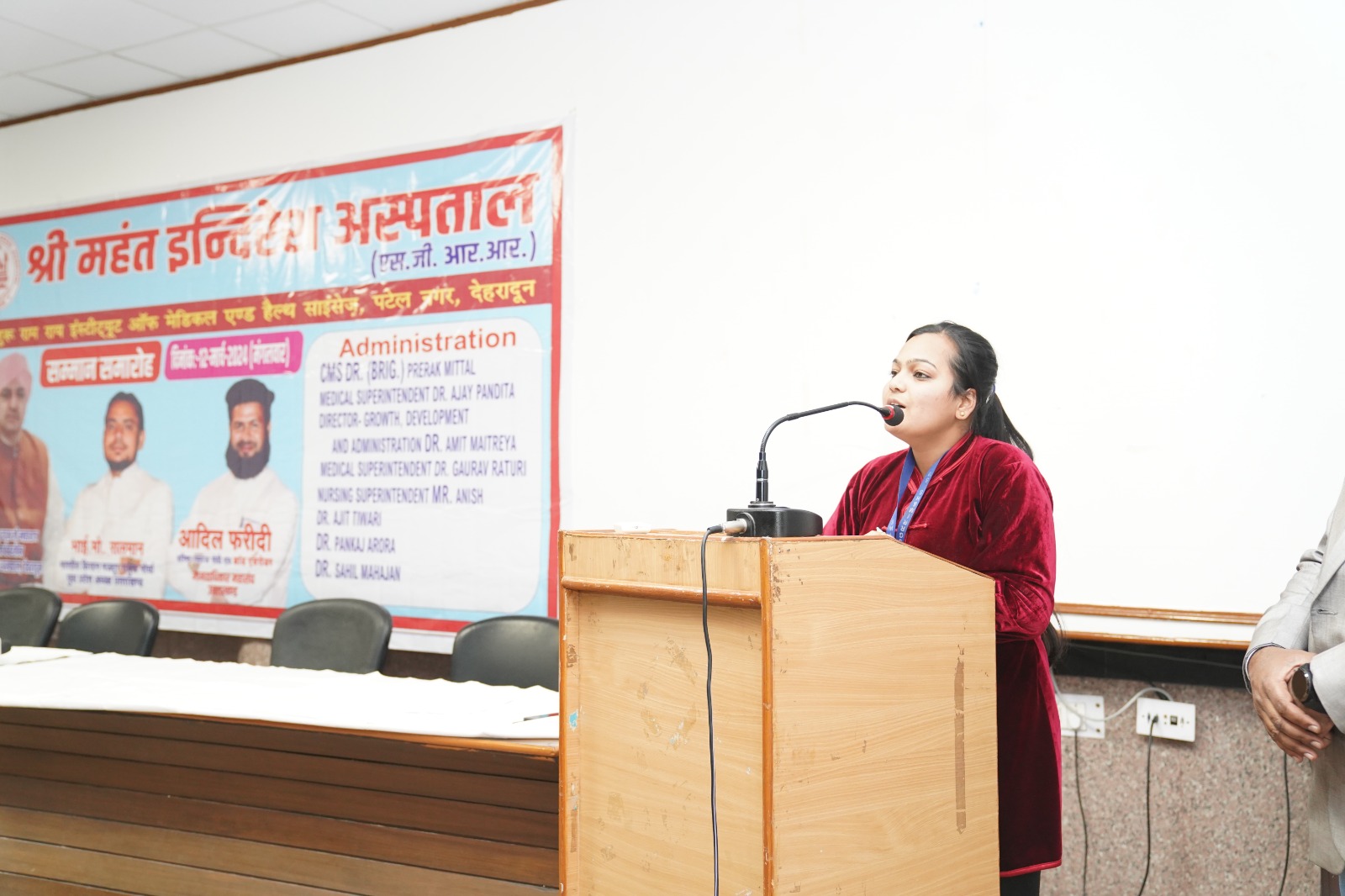 डब्ल्यू एमएफ मानवाधिकार महासंघ उत्तराखण्ड की ओर से आयोजित सम्मान समारोह में मुख्य अतिथि राजकुमार सिंधु ने कार्यक्रम का शुभारंभ किया। उन्होंने कहा कि रमजान ए पाक का महिना सेवा का संदेश भी देता है। मानव सेवा ही सच्ची सेवा है। उन्होंने कहा कि श्री महंत इन्दिरेश अस्पताल के द्वारा गरीब एवं जरूरतमंद मरीजों को हरसम्भव उपचार सेवाएं उपलब्ध करवाई जा रही हैं। पश्चिम उत्तर प्रदेश से भी भारी संख्या में मरीज़ उपचार के लिए श्री महंत इन्दिरेश अस्पताल में पहुंचते हैं। जब ये मरीज़ और पूर्ण स्वास्थ्य लाभ लेकर वापिस क्षेत्रों में अस्पताल की सेवाओं की सराहना करते हैं तो इससे क्षेत्र में अस्पताल की ख्याति और बढ़ जाती है। उन्होंने अस्पताल की प्रबन्ध समिति, उच्चाधिकारियों सहित डॉक्टरों एवं स्टाफ के कार्यों एवं सहयोग की सराहना की। कार्यक्रम का संचालन सिमरन अग्रवाल ने किया। इस अवसर पर वर्मन चौधरी, मोहम्मद सलमान, प्रदेश अध्यक्ष भारतीय किसान मजदूर संयुक्त मोर्चा, दलचन्द्रा आदि उपस्थित रहे।